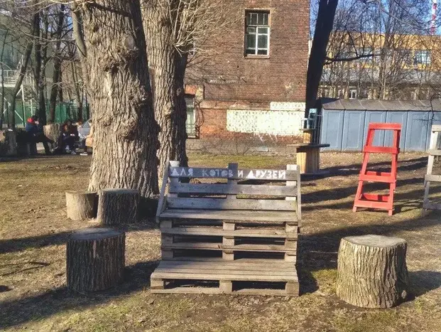 Im Aleksandrovsky Park, hinter der U-Bahn-Station Gorkovskaya, auf der ersten Bank.