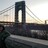 Vor dem Busbahnhof. In Hosen und Hemd gekleidet.