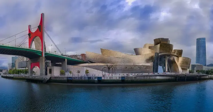 Bilbao hat sich in den letzten Jahren stark verändert, aber selbst dann hat es seine Essenz bewahrt. Dieser Besuch schlägt eine Reiseroute vor, die im neunzehnten und zwanzigsten Jahrhundert im Bereich der „Ensanche“ (Abando-Viertel) beginnt. Wir besuchen Denkmäler wie die Alhóndiga (Azkuna-Zentrum), das Epizentrum des kulturellen Lebens der Menschen in Bilbao, die Plaza Moyúa (Moyúa-Platz), das Herz der Gran Vía oder den Provinzrat, das Teatro Campos Elíseos (Theater des Elysian Field). usw. Allmählich wird unsere Reiseroute diese zeitlosen Denkmäler hinter sich lassen, um das modernste Bilbao mit Beispielen der Architektur zu entdecken, die Bilbao zu einer Referenzstadt weltweit gemacht haben, wie die Puente de la Salve, die Zubi-Zuri-Brücke oder den Iberdrola-Turm . All dies sind nur die Vorspeisen des Hauptgerichts: das Guggenheim Museum.