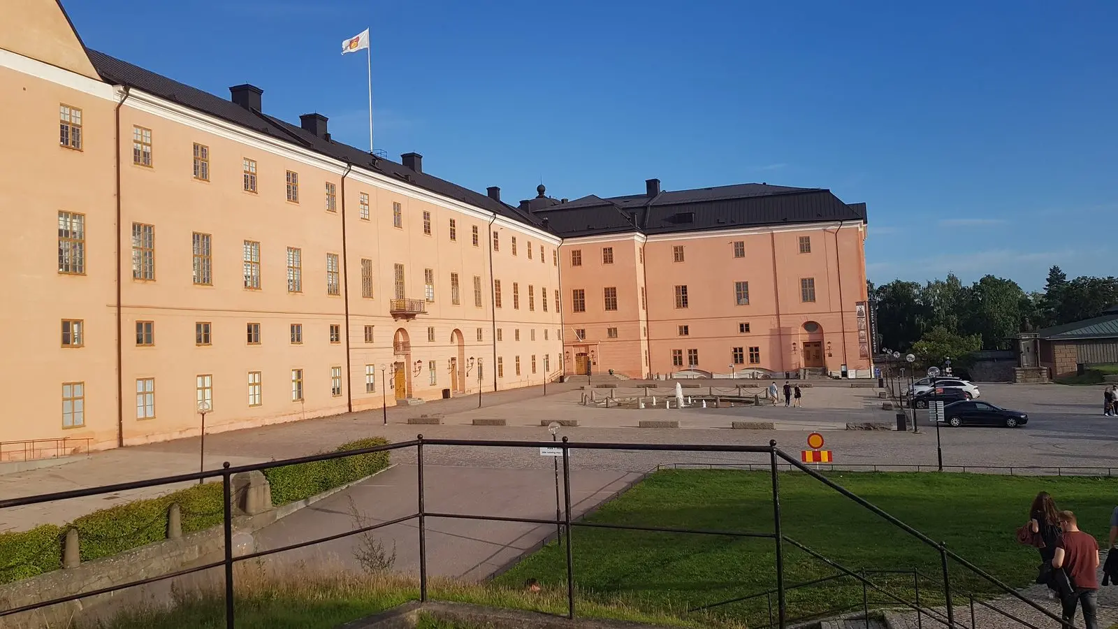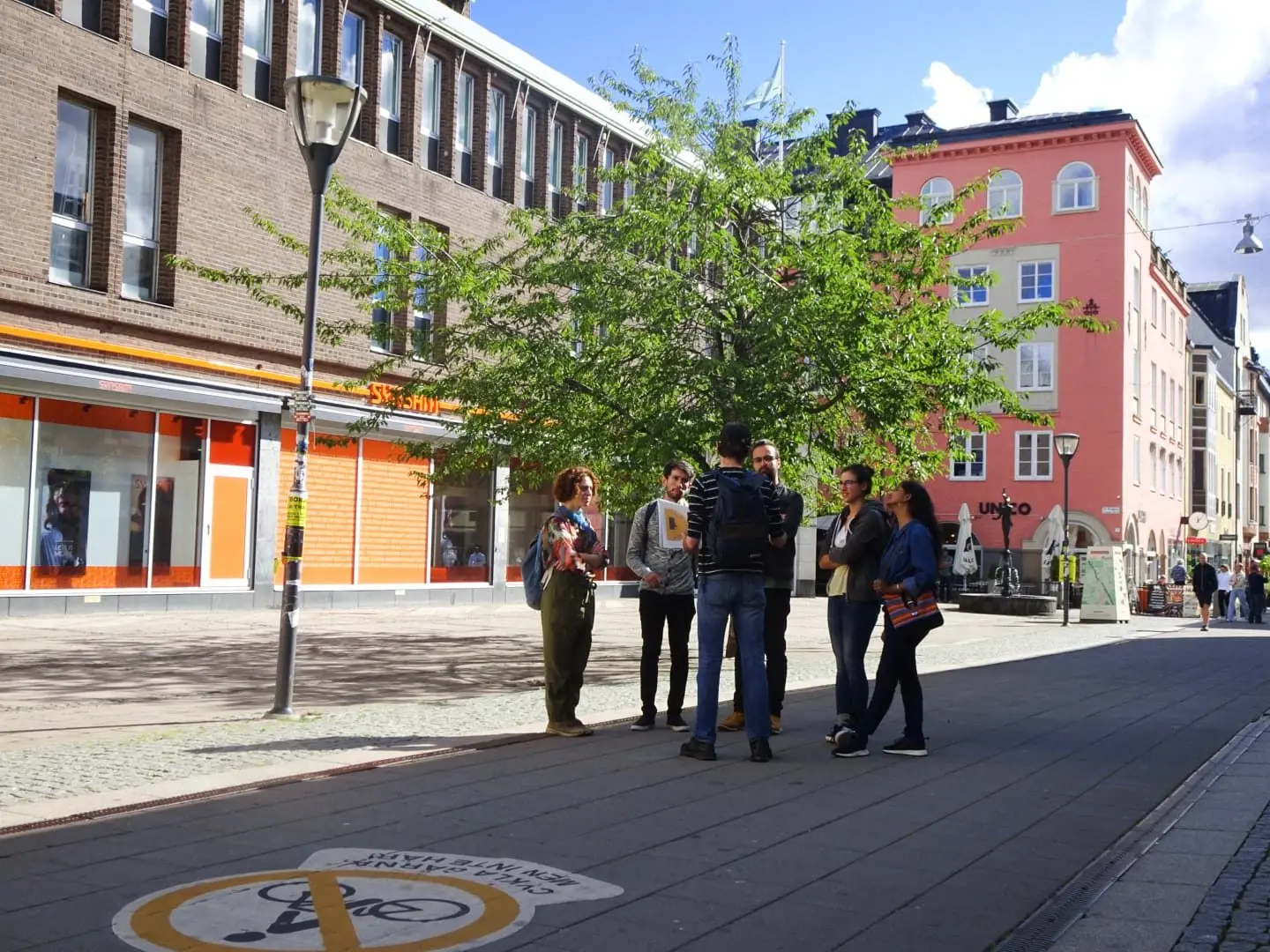 Olof Palmes Platten, mit einem Schild Free Tour Uppsala