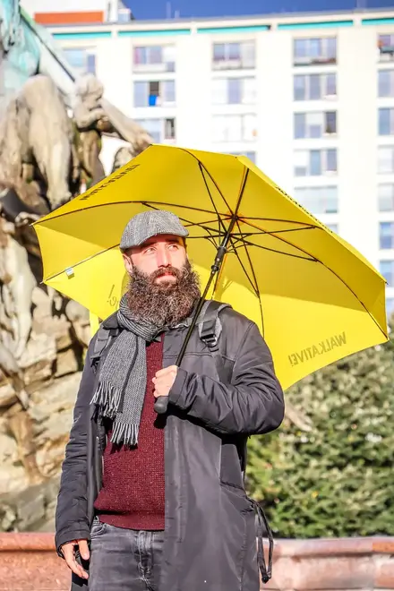 Achten Sie auf den gelben Regenschirm am Treffpunkt!