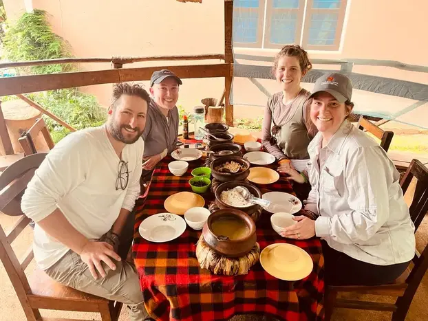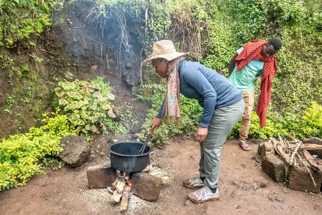 Eingebettet in die Flickenteppiche der Ausläufer des prächtigen Kilimandscharo liegt das wunderschöne Dorf Materuni, Heimat unserer Chagga-Freunde und berühmt für seinen aromatischen, vollmundigen Kaffee. An diesem duftenden und unterhaltsamen Tag haben Sie die Möglichkeit, Ihre eigene Tasse Kaffee auf die richtige Art zuzubereiten und erfahren von den einheimischen Chagga das Geheimnis der perfekten Tasse Kaffee. Als nächstes wandern Sie die kurze, aber anspruchsvolle Route zu den Materuni-Wasserfällen und können unter dem Wasser stehen, während es in einen ruhigen Pool stürzt, in dem Sie sicher baden können. Und Sie werden sofort hineinspringen wollen – nachdem Sie bei Ihrer Wanderung verschwitzt (ok, glühend!) sind, gibt es nichts Beruhigenderes, als im kühlen Wasser zu schweben. Genießen Sie Ihr Lunchpaket vor oder nach dem Schwimmen – es gibt keine Regeln! Später auf unserem Rückweg machen wir eine kurze Stadtrundfahrt mit dem Bus, bevor wir die Tour beenden. NB: Bitte beachten Sie, dass eine Eintrittsgebühr von 15 USD pro Person anfällt, die Sie direkt an die Dorfverwaltung zahlen müssen.