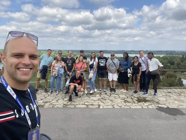 Treffpunkt: Ich werde auf dem Terazije-Platz vor dem Hotel „Moskva“ am Terazije-Brunnen stehen. Ihr werdet mich leicht erkennen, da ich groß bin und ein blaues Namensschild um den Hals trage.