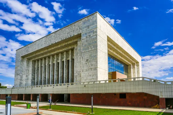 Das erste Kino in Kirgisistan Ala-Too, Manas-Statue, ein großes Museum, Regierungsgebäude.