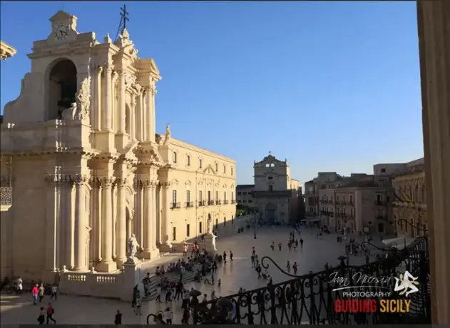 Die Route beginnt an der Ponte Umbertino , die die Insel mit dem Festland verbindet. Wenn Sie weiter in Richtung Via dell'Apollonion gehen, können Sie die Überreste des Tempels von Apollo bewundern, dem ältesten Steintempel, der von den Griechen im Westen erbaut wurde. Die geführte Tour geht weiter in Richtung Zentrum der Insel, vorbei an der Piazza Archimede mit ihrem wunderschönen Diana-Brunnen , dem Werk von Giulio Moschetti.
