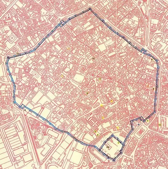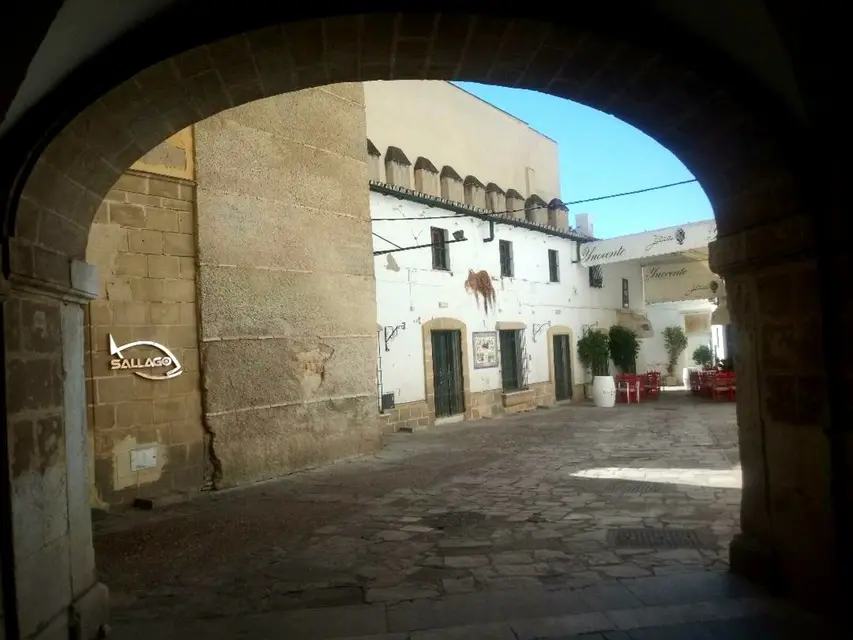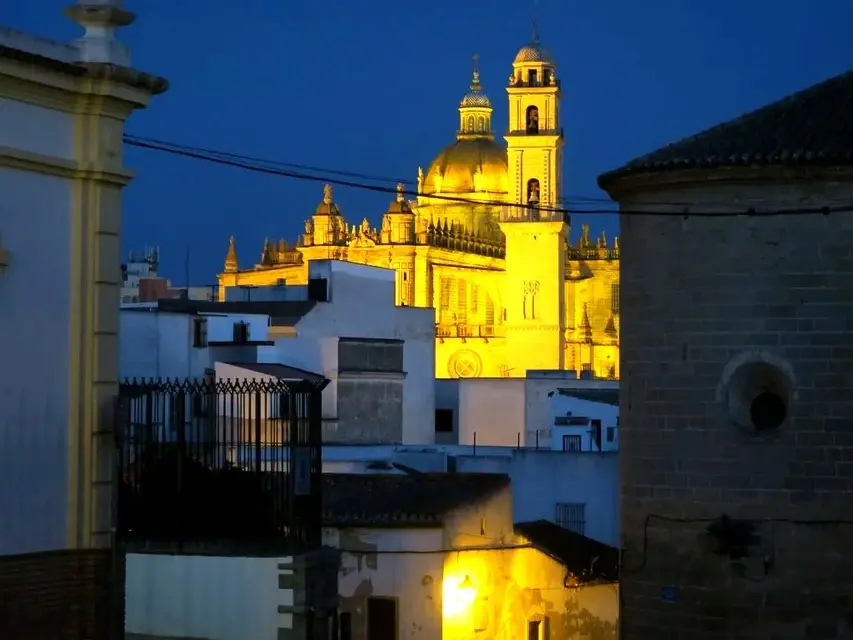 Unsere Tour beginnt mit dem Betreten der alten muslimischen Stadt durch eines der Haupttore der Medina: das Sevilla-Tor, gegenüber dem monumentalen Kreuzgang des Klosters Santo Domingo , in dem sich Überreste befinden, die möglicherweise aus der andalusischen Zeit von Jerez stammen. Von dort aus erkunden wir die malerischen und teils geheimnisvollen Gassen, die zum jüdischen Viertel und den sechs Stadtteilen der Altstadt führen: San Marcos, San Juan, San Lucas, San Mateo, San Salvador und San Dionisio.