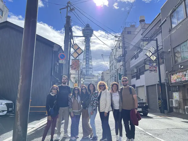 Abschließend erkunden wir Shinsekai, ein Viertel mit einer einzigartigen Retro-Atmosphäre, das für den Tsutenkaku-Turm und seine lokale Küche wie Kushikatsu (frittierte Spieße) berühmt ist.