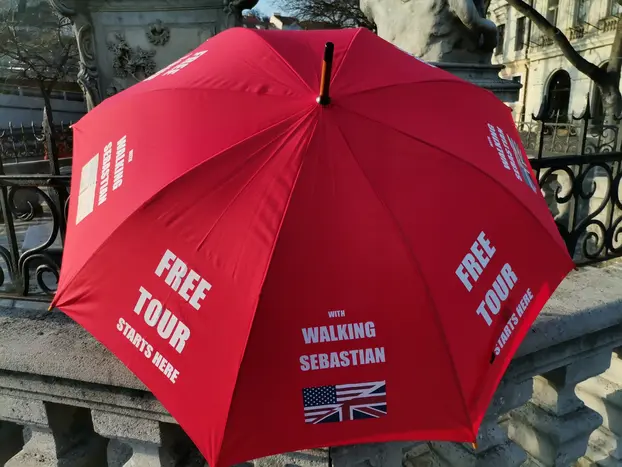 Die Tour beginnt am Rybné-Platz 1 zwischen dem Park Inn Hotel und der Pestsäule. Ich werde einen roten Regenschirm halten.