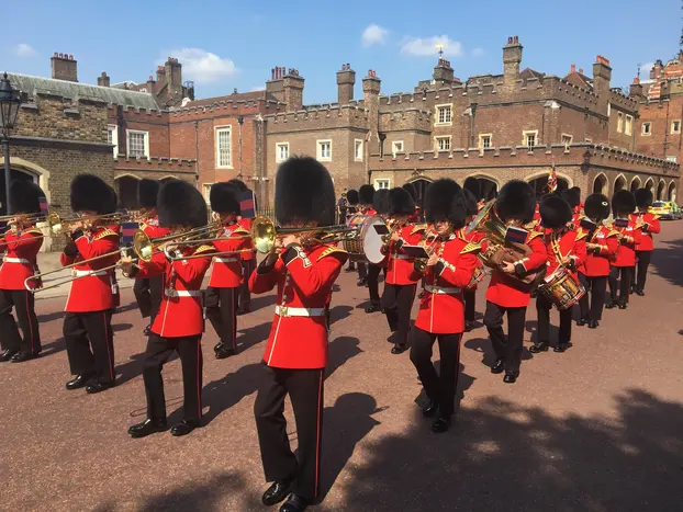 Kommen Sie und sehen Sie sich den britischen Prunk und die britische Zeremonie sowie, falls verfügbar, die Wachablösung an.