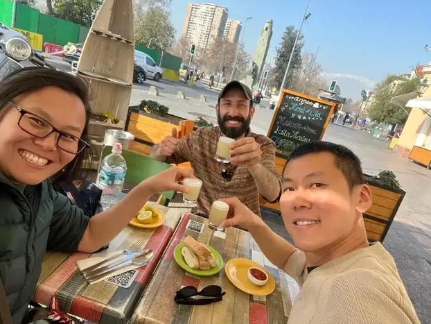 Insgesamt werden wir an drei oder vier Orten in den vier Stadtvierteln Halt machen, um (optional) Folgendes zu probieren: eine Bierverkostung, ein chilenisches Hotdog, Eis, Empanadas, Pisco Sour und sogar „Terremotos“ (chilenisches Getränk), je nach den Interessen der einzelnen Gruppen.
