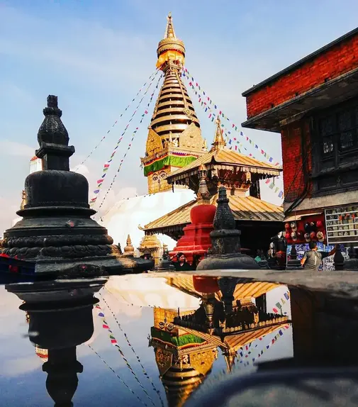 Dieser heilige Wallfahrtsort ist auch die Heimat Hunderter Affen, die für tibetische Buddhisten und Hindus als heilig gelten. Der Legende nach war Manjushree, der Bodhisattva der Weisheit, gerade dabei, den Tempelhügel zu errichten, als sich die Läuse in seinen Haaren in diese Affen verwandelten. Swayambhunath bedeutet „aus sich selbst entstanden“ und leitet sich von dieser Legende ab.