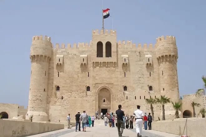 Wir beenden unsere Tour mit der Burg Quaitebay, der großen Verteidigungsanlage aus der Zeit des arabischen Alexandria, die die Soldaten dieser Zeit vor Angriffen von außen schützte, zuletzt mit meinem neuen Freund (dem Touristen).