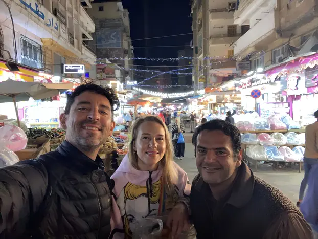 Zuerst treffen wir uns in der Bibliothek von Alexandria am Meer, das ist unser Treffpunkt am frühen Morgen. Von dort aus können wir mit öffentlichen Verkehrsmitteln die Kultur Alexandrias und der Ägypter kennenlernen . Beginnen wir mit den Monumenten der Katakomben, der einzigen Mischung griechischer und römischer Monumente, oder dem antiken lateinischen Friedhof. Wir teilen unsere Gewohnheiten und Traditionen miteinander und erzählen ihnen etwas über die antike griechische und römische Zeit Alexandrias.