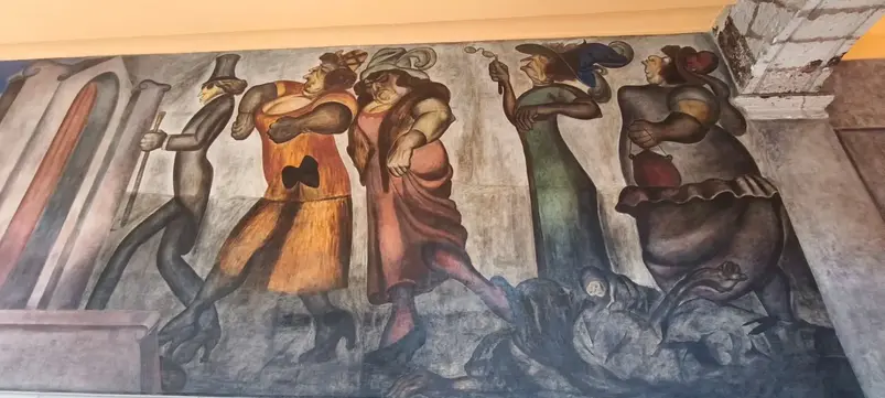 Anschließend betreten wir einen traditionellen Markt – nicht zum Essen, sondern um eine besondere Ecke zu erkunden, in der sich eines meiner Lieblingswandgemälde der Stadt befindet. Diese im letzten Jahrhundert gemalten Werke behandeln soziale und kontroverse Themen, die auch heute noch relevant sind, und machen den Markt zu einem wahren lebendigen Museum.