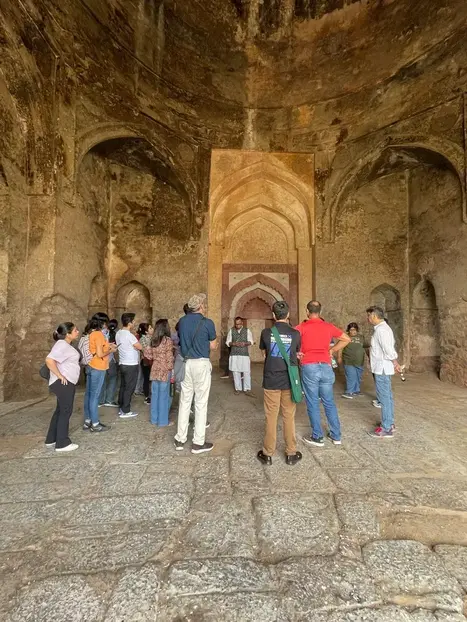 Zwei Stunden lang erkunden wir die weniger bekannten Monumente der Baumeister Delhis – der Tughlaqs. Wir hören Geschichten über die Flüche der Sufi-Heiligen, Kriege, Hauptstadtverlegungen, Demonetisierung, Vatermord, Brudermord und Palastintrigen. Der Spaziergang wird unterbrochen von Theateraufführungen von Parthajeet als eigenwilligem Monarchen Muhammad-bin-Tughlaq!