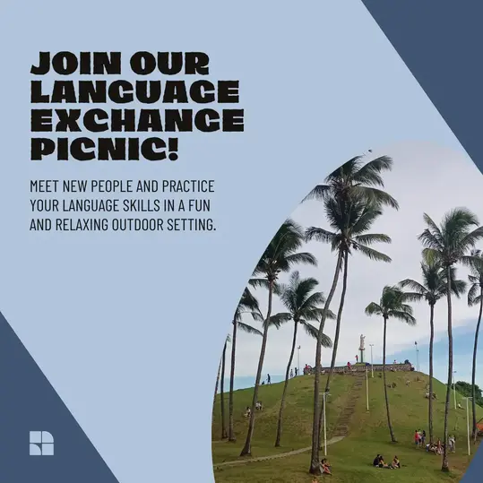 Sprachaustausch tagsüber: Nehmen Sie an unserem Picknick teil, bei dem Sie die wunderschöne Landschaft des Barra-Viertels in der Stadt Salvador genießen, neue Freunde finden und an einigen Spielen teilnehmen können, um neue Sprachen wie Englisch zu üben.
