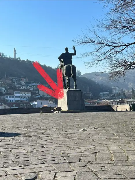 Treffpunkt: Hof der Metechi-Kirche, ich werde bei der Statue stehen.