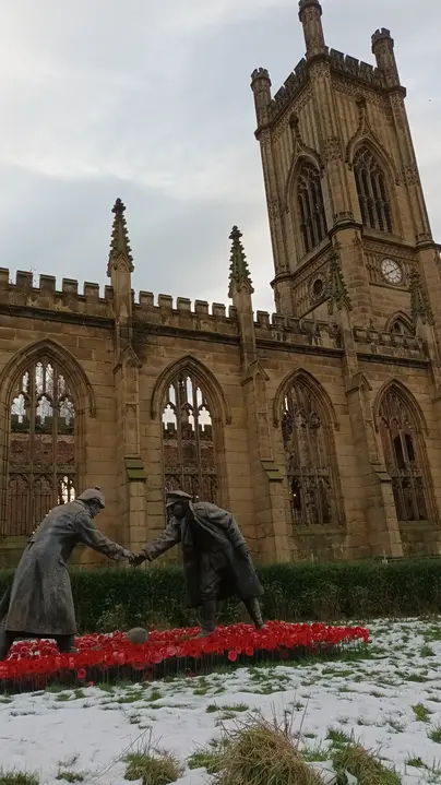 Alles beginnt in der Bombed Church oder St. Luke's Church, wo sich die Geschichte der Stadt wie in einem Film abspielt. Und von dort aus beginnen wir mit der Aktion.