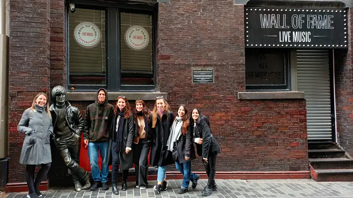 Von dort aus machten wir uns auf den Weg zur Mathew St im Cavern Quarter, dem Höhepunkt des Films. Der Geist der Beatles und der Rhythmus der verrücktesten und unterhaltsamsten Stadt im Vereinigten Königreich werden uns verfolgen.