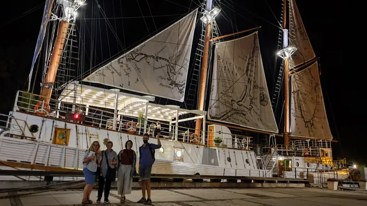 • Wir beginnen neben dem Symbol von Klaipeda – dem Meridianschiff