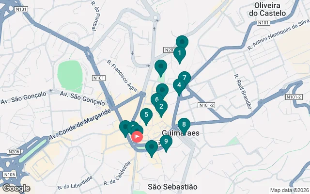 Die Tour beginnt am Torre da Alfândega und führt durch mehrere Höhepunkte wie den Jardim da Alameda, die Zona de Couros und ihre Mystik, die Igreja e Convento de S. Francisco, den Largo da República do Brasil und die Igreja de S. Gualter, einen Spaziergang innerhalb der Mauer und das Museu Alberto Sampaio, den Hof und die Geschichte von Mumadona Dias, den Jardim do Carmo und seine Legenden, den Paço dos Duques, Capela de S. Miguel, Castelo, Rua de Santa Maria, Praça De Santiago und ihre Symbole, Praça da Oliveira und Padrão do Salado, Rua da Rainha und Porta da Vila, bis sie am berühmten Largo do Toural enden.
