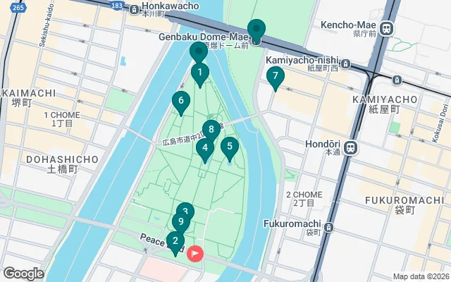 Beginnen Sie an der Atombombenkuppel , einem der wenigen Bauwerke, die nach dem Bombenangriff noch stehen geblieben sind. Diese Ruine, die heute zum UNESCO-Weltkulturerbe gehört, symbolisiert Zerstörung und Hoffnung zugleich und erinnert die Welt an die Bedeutung von Frieden und nuklearer Abrüstung. - Kinderfriedensdenkmal