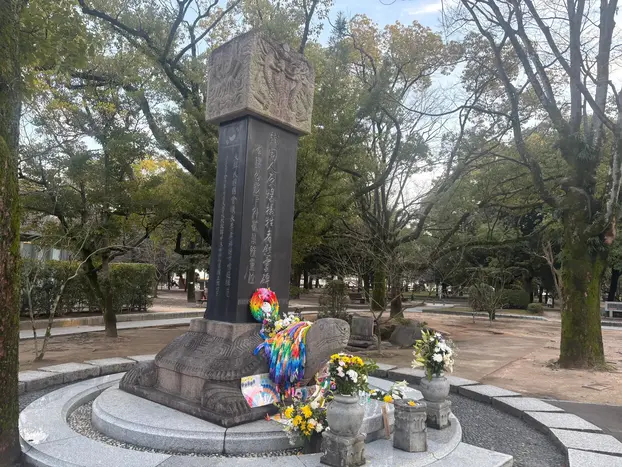 Besuchen Sie das Kinderfriedensdenkmal , das von der Geschichte von Sadako Sasaki inspiriert ist, einem jungen Mädchen, das aufgrund von Strahlenbelastung an Leukämie erkrankte. - Friedensglocke & Friedensflamme