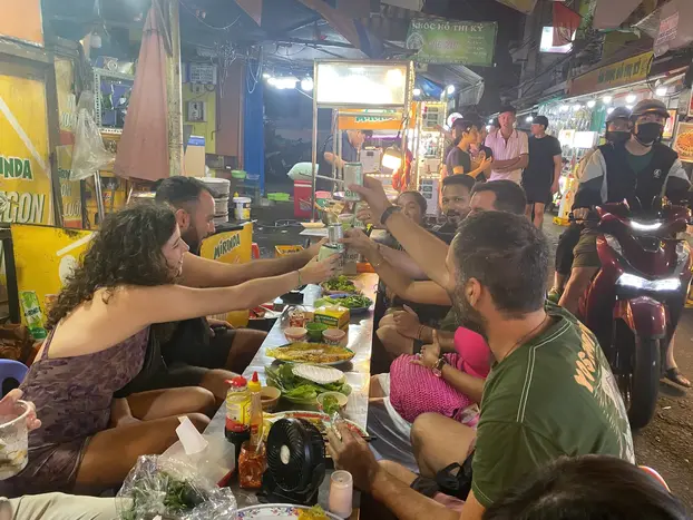 Schließen Sie sich unserer unvergesslichen kulinarischen Wanderung an, der einzigen auf GuruWalk, die authentische lokale Küche, versteckte Kriegsgeschichte und eine festliche Nacht in der Beer Street (Bùi Viện) kombiniert, alles in einer epischen Nacht.