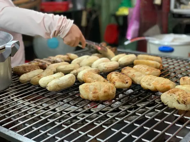 📍 Klebreis mit gegrillter Banane: ein süßes Dessert, reich an Kokosnuss, dem die Einheimischen nicht widerstehen können!