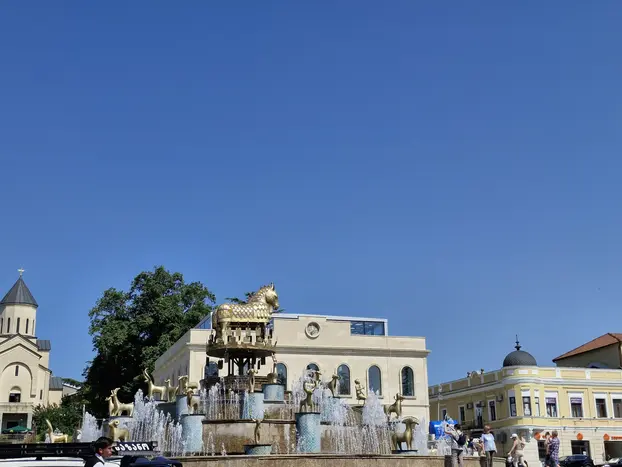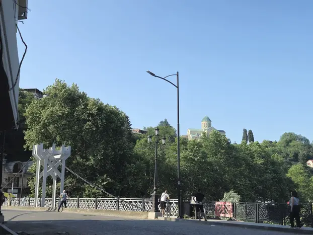 Wir beginnen an den ikonischen weißen Säulen in der Nähe des Meskhishvili-Theaters und schlendern die historische Rustaveli-Straße entlang bis zur malerischen Weißen Brücke. Genießen Sie unterwegs eine frische georgische Brezel aus einer lokalen Bäckerei – ein köstlicher Einblick in den Alltag.