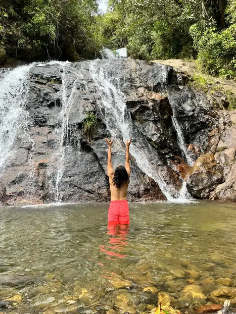 Anschließend unternehmen wir eine 30-minütige Wanderung auf einem einladenden Naturpfad, der perfekt ist, um die Ruhe der Umgebung zu genießen. Der Weg führt uns zu einem wunderschönen Wasserfall, dessen kristallklares Wasser Sie erfrischen und an einer Wasserzeremonie und Meditation teilnehmen können, die Körper und Geist revitalisiert.