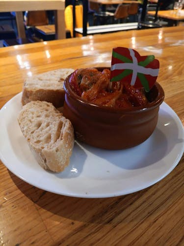 Una comida itinerante de unas tres horas de duración para descubrir los múltiples matices de las tapas gourmet de Bilbao: croquetas, pintxos, patatas a la riojana o guiso de morcilla, degustación de queso tradicional vasco y pastelito vasco. Si quieres descubrir todos los secretos y curiosidades de la tradición gastronómica bilbaína, ¡únete a este recorrido gastronómico con al menos cuatro paradas y conviértete en un auténtico experto de la cocina bilbaína!
