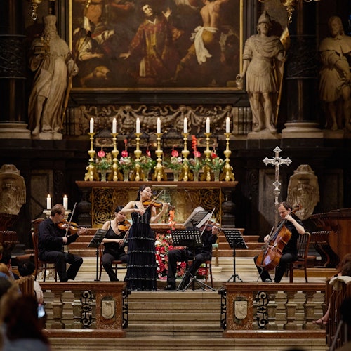 Imagina oír "Las Cuatro Estaciones" de Antonio Vivaldi en la Catedral de San Esteban, donde se celebró el funeral del maestro en 1741. Es un homenaje a su legado.