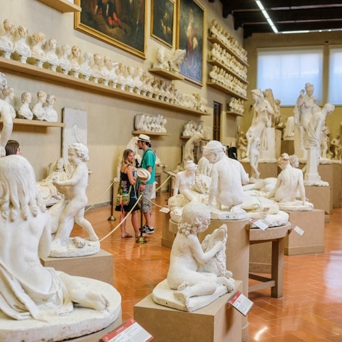 A continuación, visita la Galería de la Academia. Explora las obras maestras de Miguel Ángel y aprende sobre la vida y obra del legendario artista. Disfruta de un tranquilo almuerzo toscano antes de dirigirte a la Galería de los Uffizi por la tarde.
