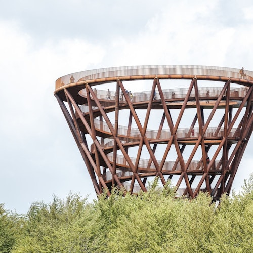 Comienza tu viaje con una visita a la Torre del Bosque, que ofrece una aventura única en la hermosa campiña de Dinamarca. Disfruta de unas vistas de 360° desde lo alto de esta torre de 45 metros, conectada a una pasarela sobre la copa de un árbol de 900 metros de longitud.