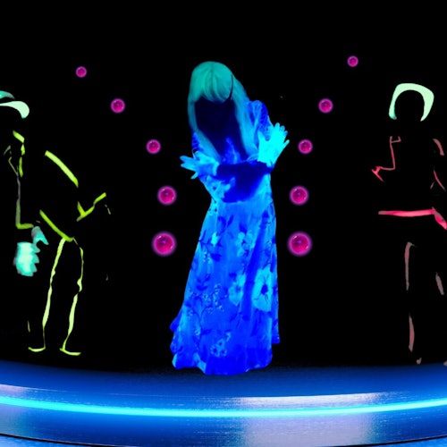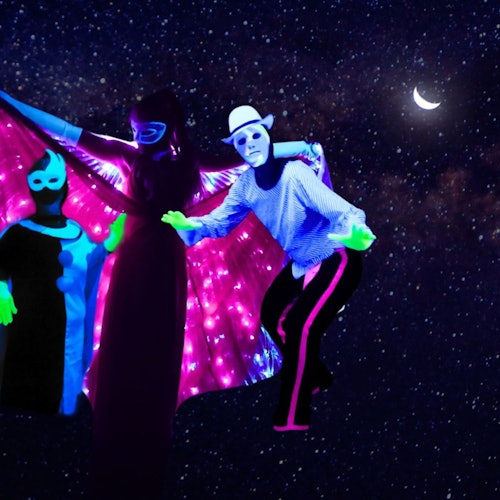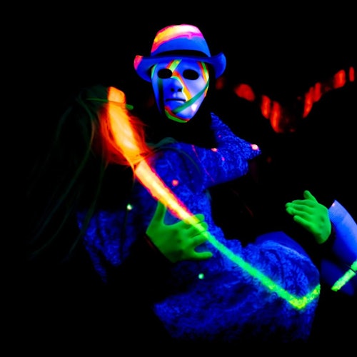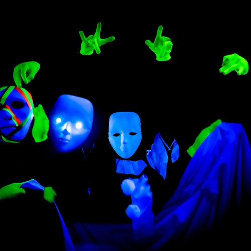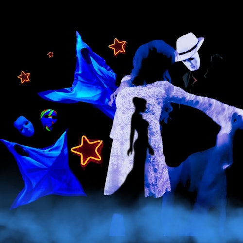 Asiste a un espectáculo de teatro de luz negra con proyecciones de películas y escenas en directo. Observa cómo se desarrolla una historia en la que el amor evoluciona con el tiempo.