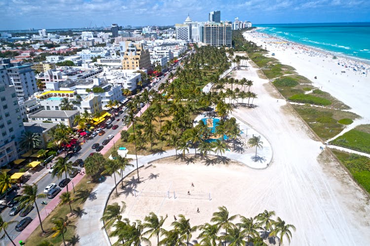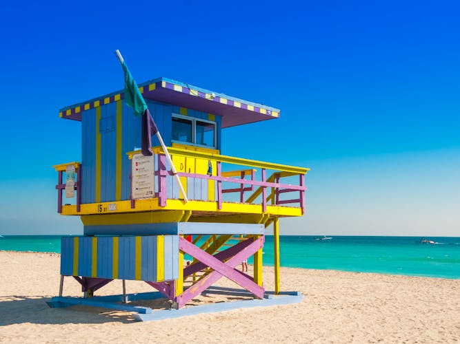 Una vez descargado, el recorrido comienza en el vibrante barrio de South Beach de Miami, junto al Miami Beach Ocean Walk. Mientras conduces, admirarás la famosa arquitectura Art Déco de South Beach, como los hoteles Carlyle y Leslie y la Mansión Versace.