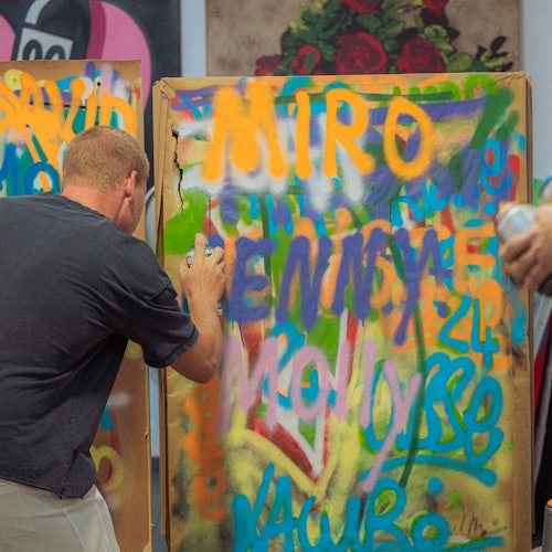Empieza en el taller de David de Limón. Pasa dos horas aprendiendo técnicas de pintura con spray de uno de los artistas callejeros más conocidos de Valencia. Escucha su trayectoria como creador de "graffiti ninja" y obtén consejos para crear tus obras de arte.