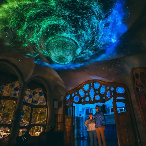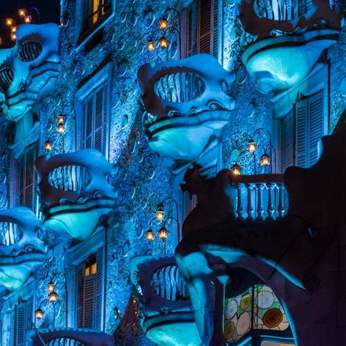 Visita la Casa Batlló por la noche para vivir una experiencia invernal especial. Contempla la arquitectura de Antoni Gaudí iluminada por la noche y disfruta del ambiente mientras exploras este emblemático edificio.