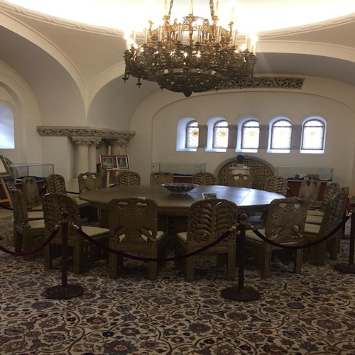 Pasea por los imponentes pasillos junto a tu guía, ve las habitaciones del rey, la reina y los niños, así como un salón de música con un piano de cola antiguo y la oficina del rey.