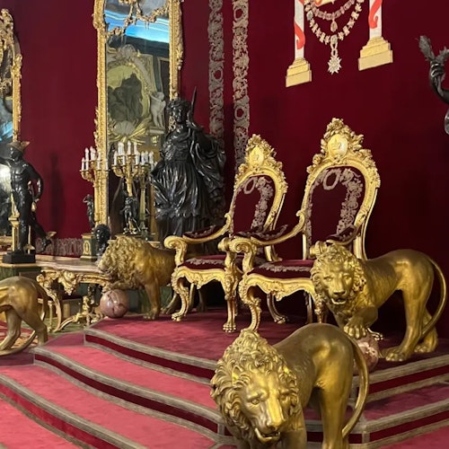 - La audioguía está disponible a través de una app móvil en tu smartphone. Se requiere una conexión estable a internet para descargar la app, por lo que se recomienda descargarla antes de llegar al Palacio Real
