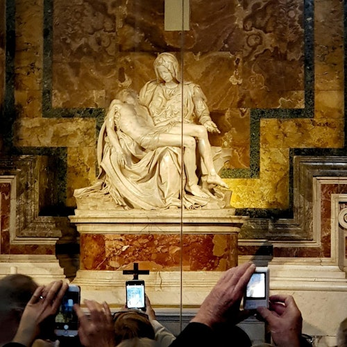 Entra en la Basílica para ver la Piedad de Miguel Ángel y las estatuas de Bernini tras el control de seguridad.