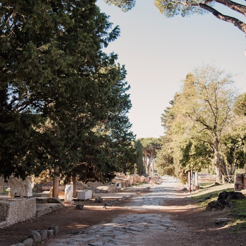 Las entradas al recinto de Ostia te permiten visitar una antigua necrópolis con tumbas del siglo II. Admira los restos de un teatro romano con capacidad para 4.000 espectadores, y los espléndidos mosaicos y frescos que adornan las paredes de los Baños de los Siete Sabios.