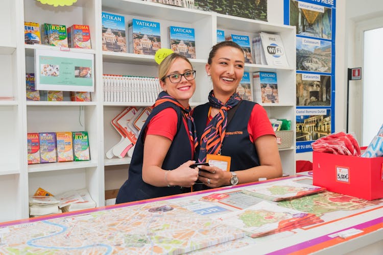 Please exchange your voucher at the Touristation Aracoeli. The Touristation office is not close to the Colosseum entrance, but is near Piazza Venezia. Please note that a fountain and orange flags are in front of the office entrance. The time selected at the moment of booking refers to the meeting point time at the local operator's office. Please be on time, latecomers will not be accommodated.