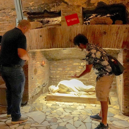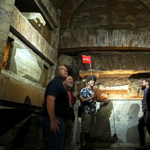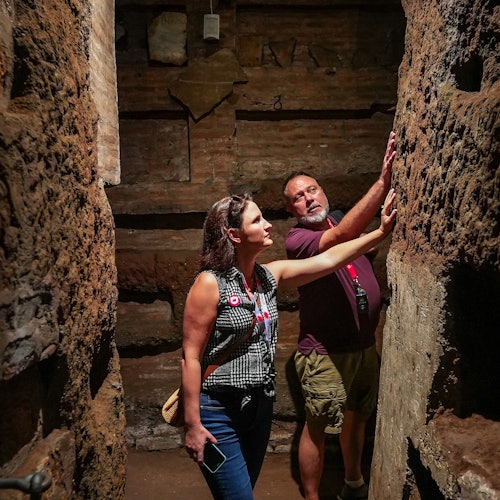 Después, a las Catacumbas, donde descansan en paz los primeros cristianos, mártires y papas. Adéntrate bajo tierra con tu guía para conocer la historia cristiana primitiva de Roma.