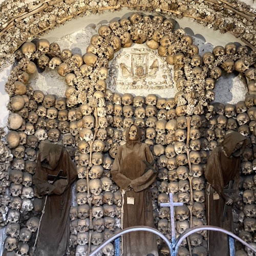 Empieza cerca de la Plaza Barberini con una visita guiada a la Cripta de los Capuchinos, donde los huesos de los frailes capuchinos están dispuestos en exposiciones únicas.
