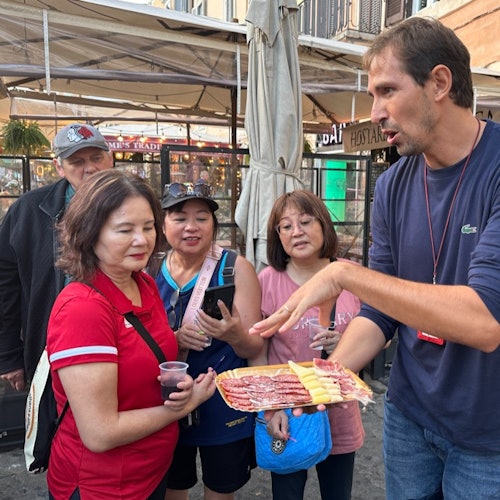 Prueba 15 comidas diferentes, desde charcuterías familiares hasta locales de comida callejera. Disfruta de una cena de 3 platos con vino o cerveza locales. Aprende sobre las tradiciones culinarias de Roma y la forma correcta de comer helado.