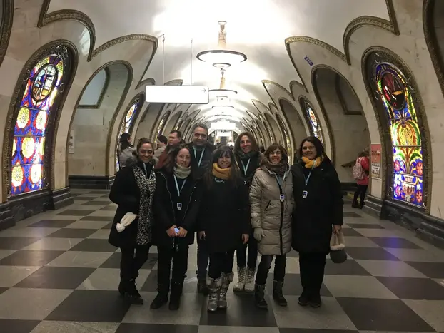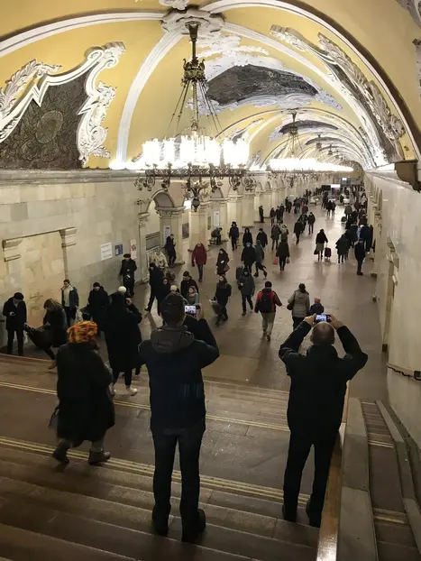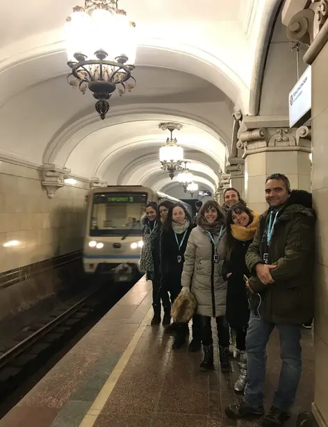 Por seguridad de la Administración del Metro de Moscú, el grupo no puede superar 20 personas. Nos reuniremos en el Monumento(estatua) de Karl Marx. A 2 a minutos a pie encontraremos la estación Teatralnaya. Aquí comenzaremos nuestra visita guiada por el metro de Moscú. Desde su inauguración en 1935 el metro de Moscú es uno de los más importantes del mundo. Sus estaciones son verdaderos palacios, construidas principalmente en época soviética para uso y disfrute del proletariado. Pocos museos en el mundo cuentan con la presencia de tantas esculturas de bronce, paneles de mosaico, figuras de porcelana, rejas forjadas y lámparas únicas. Tenemos que hacer un viaje fascinante por el metro de Moscú y ver 8 estaciones, que se construyeron entre 1938 y 1952 en el mismo arquitectónico: eclecticismo, que combina elementos del neoclasicismo y el realismo socialista. Todas las estaciones son objetos del patrimonio cultural y están bajo protección estatal. Aprenderás; en que año se abrió la primera línea del Metro, que papel jugó el metro durante la II Guerra Mundial. Verás hermosas esculturas de bronce estación "Ploschad Revolyutsii", paneles de mosaico de la estación "Komsomolskaya", "Mayakovskaya", y "Belorusskaya" - figuras de porcelana que adornan la estación "Teatralnaya" - vidrieras en la estación "Novoslovodskaya". Admire la columna de flores del pasaje entre las estaciones kurskaya. Verá elementos de la arquitectura griega antigua. La belleza del marmol y el granito utilizados en el diseño de las estaciones. Aviso Importante: El recorrido es posible desde 1 persona. Para grupos de más de 3 personas, se proporcionan radio-guias individuales; para su comodidad, puede usar sus propios auriculares. Por favor, a la hora de hacer la reserva dejar su número telefónico para comunicarme con todos antes del tour si llegan a tener retraso. Los estaré esperando con un paraguas amarillo. El valor del pasaje del Metro con la tarjeta *Troyka es de 40 rublos, sin la tarjeta *Troyka es de 57 rublos *El valor de la tarjeta Troyka es de 50 rublos, Los niños de hasta 7 años no tienen que pagar el pasaje. Duración: 2 Horas y media Los estaré esparando con un paraguas amarillo. !!Por favor, hacer reserva al menos con un dia de anticipación!! Si no vas a poder asistir al tour, por favor, cancela la reserva, ya que en caso contrario te estaré esperando. Las estaciones más cercanas son: Okhotny Ryad, salida 8-9, linea 1 (roja). Teatralnaya, salida 8-9-10, linea 2 (verde). Ploshchad Revolyutsii, salida 10, linea 3 (azul oscura) Давай, увидимся!