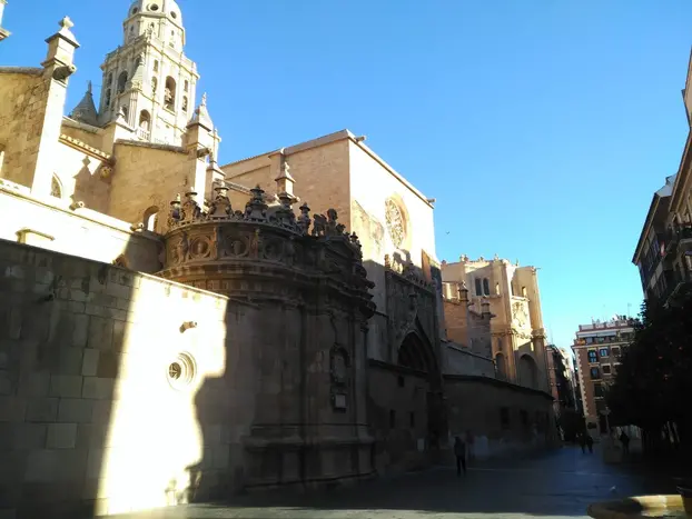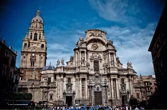 Murcia es una ciudad universitaria en el sureste de España y la capital de una región también llamada Murcia. La Plaza Cardenal Belluga es la joya arquitectónica de la ciudad, donde la adornada catedral, con su mezcla de estilos desde el gótico al barroco, y el colorido Palacio Episcopal del siglo XVIII contrastan con el moderno ayuntamiento de la década de 1990.