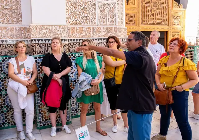 Están preparados a pasar conmigo una experiencia única, un viaje a través del tiempo en esta ciudad que tiene un encanto inagotable. Empezamos, entonces nuestro tour por la plaza Jemaa el fna , el punto de encuentro por excelencia y el corazón histórico y comercial de la ciudad ocre, para visitar los barrios más antiguos con sus laberintos de callejuelas, con sus zocos pintorescos que recuerdan la época de las caravanas. Después seguiremos hacia el barrio Mellah donde vivían los judíos expulsados de España que marcaron la Historia plural de esta ciudad, para recorrer al final la kasbah: ciudad imperial y sede del poder de todos los sultanes que optaron por Marrakech como capital. En este paseo marcamos paradas al lado de los monumentos más destacados y tendremos comentarios útiles para la ubicación y la historia de los lugares , antes de volver al final a nuestro punto de partida. El tour incluye: La Koutoubia. . El barrio Riad Zitoun. El barrio Mellah (barrio judío). Los zocos . La plaza Jemaa el fna.